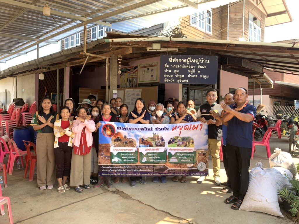 เกษตรท่าตูม ร่วมรณรงค์สร้างการรับรู้การงดเผาในพื้นที่การเกษตรให้แก่เกษตรกรในเวทีการประชุมหมู่บ้านประจำเดือนกุมภาพันธ์ 2569